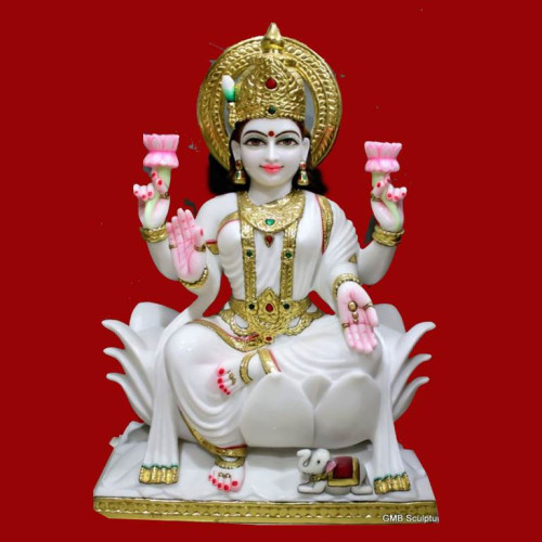 Lakshmi with Owl statue of 2 feet Marble