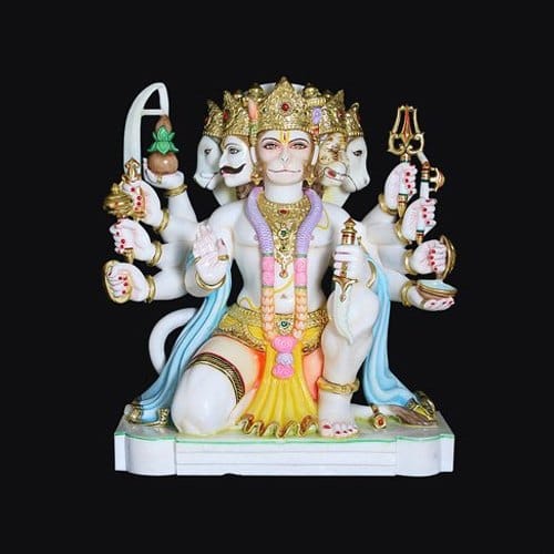 2.5 Feet White Marble Panchmukhi Lord Hanuman idol